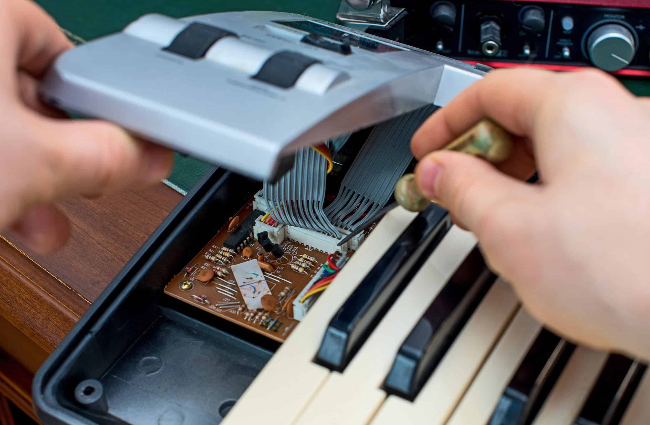 Digitale Tasteninstrumente mit einer Vielzahl an Sensoren und elektronischen Platinen funktionieren grundlegend anders als ihre akustischen Vorbilder. Klassische Klavierbauer sind perfekt darin, Meisterwerke aus edlen Hölzern, Saiten und feiner Mechanik zu bauen, zu reparieren und zu justieren. Unsere fachkompetenten Pianisten bei Tastenexpress zeichnet die perfekte Mischung aus leidenschaftlichem Musizieren und Begeisterung für digitale Technik aus.
