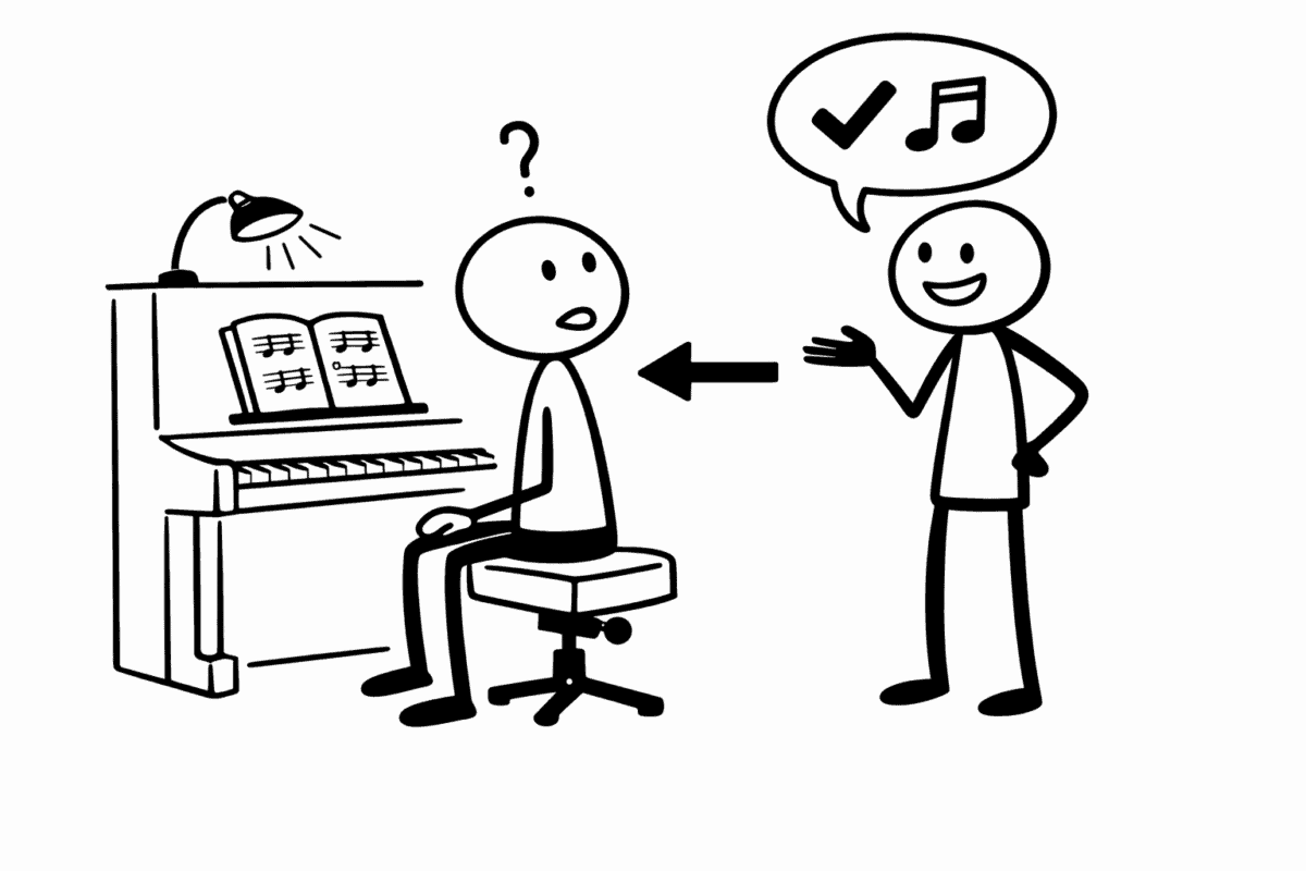 Feedback ist nicht nur beim Klavierlernen wertvoll, sondern wird bewusst in fast allen Bereichen eingesetzt, von der Unternehmensführung bis zum Sport, um Stärken zu erkennen, Verbesserungspotenziale sichtbar zu machen und Motivation hochzuhalten. Und beim Musikmachen sind Rückmeldungen ebenso wichtig – am besten aber von Musikern.
