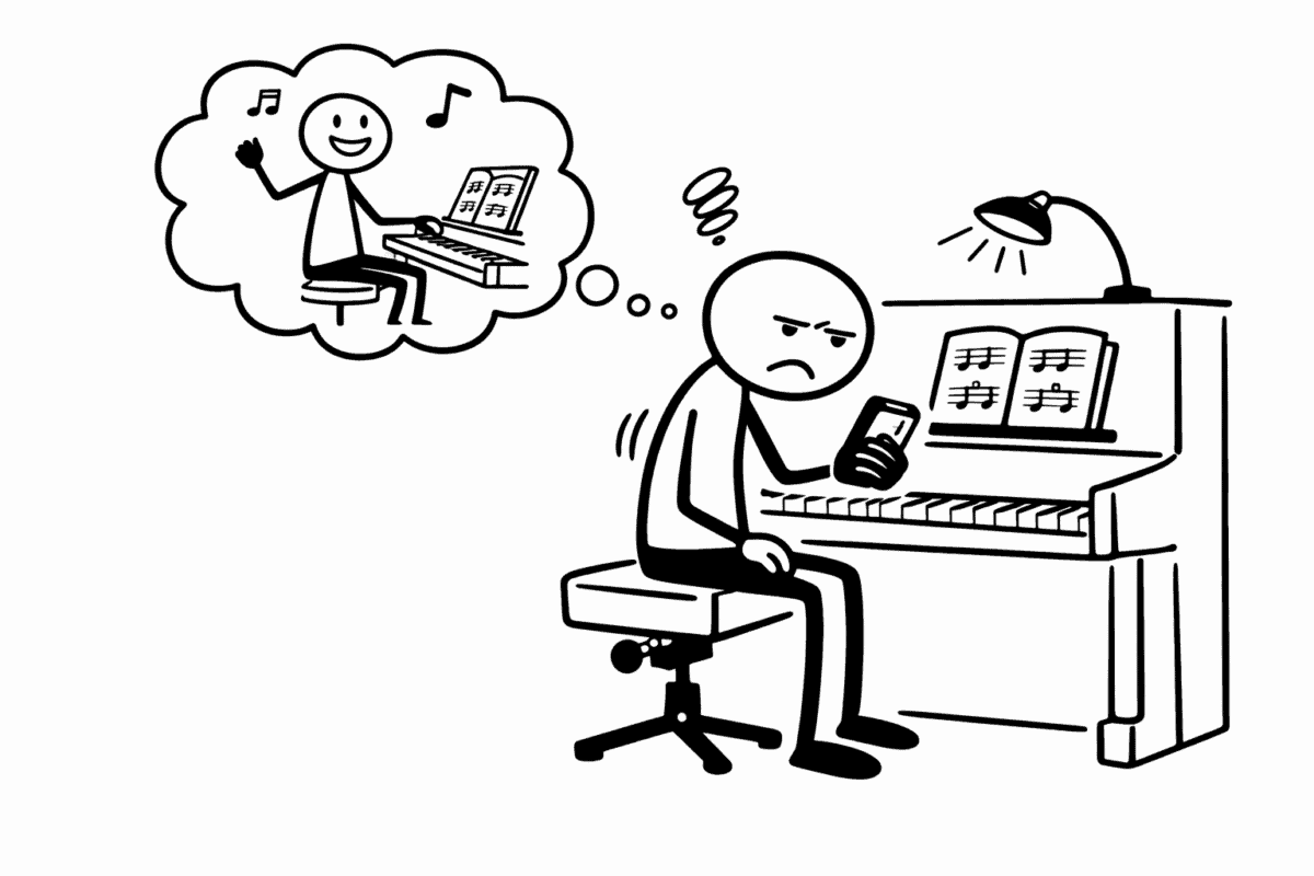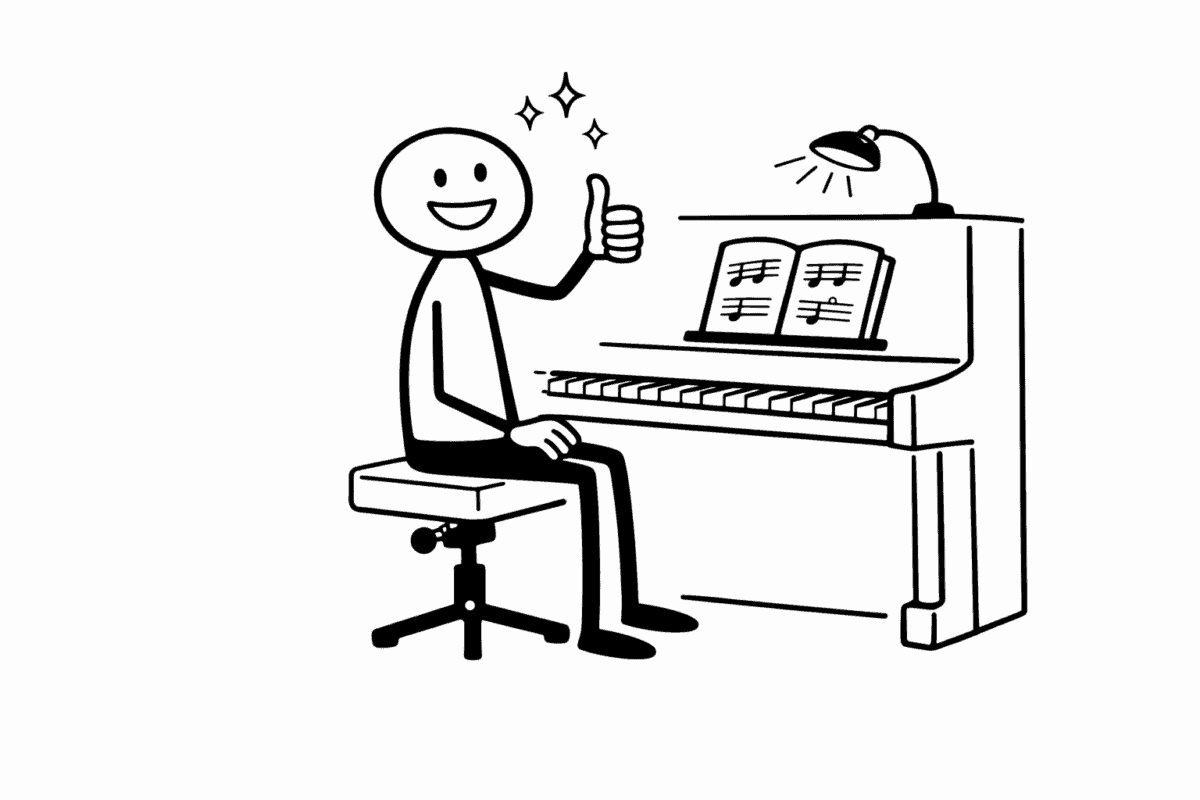 👉 Definiere vor jeder Übungseinheit ein klares, nicht zu hoch gestecktes Ziel für heute. Wenn Du es erreichst, erlebt Dein Gehirn Erfolg und du schaffst eine gute Basis, um morgen wieder an die Tasten zu gehen.