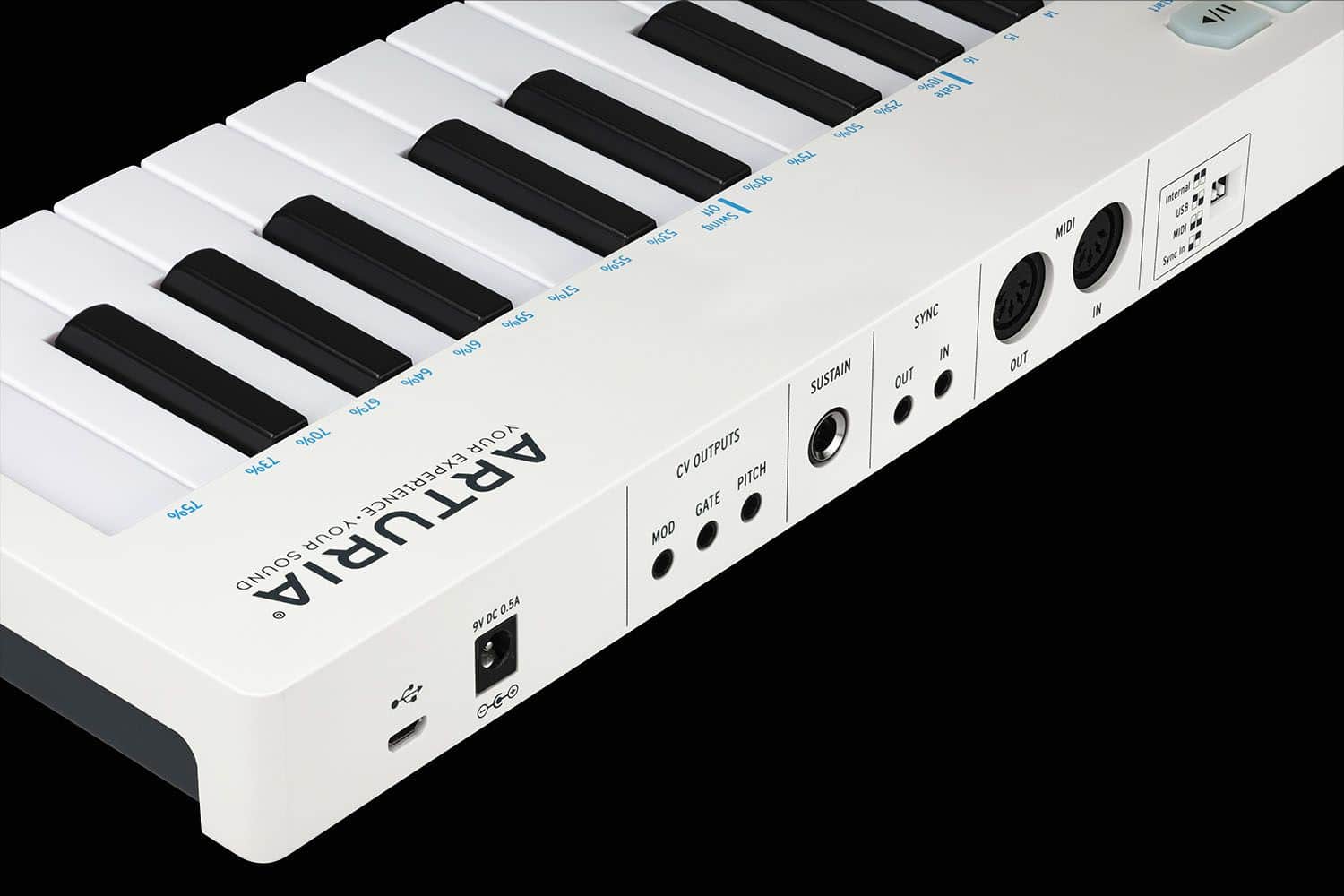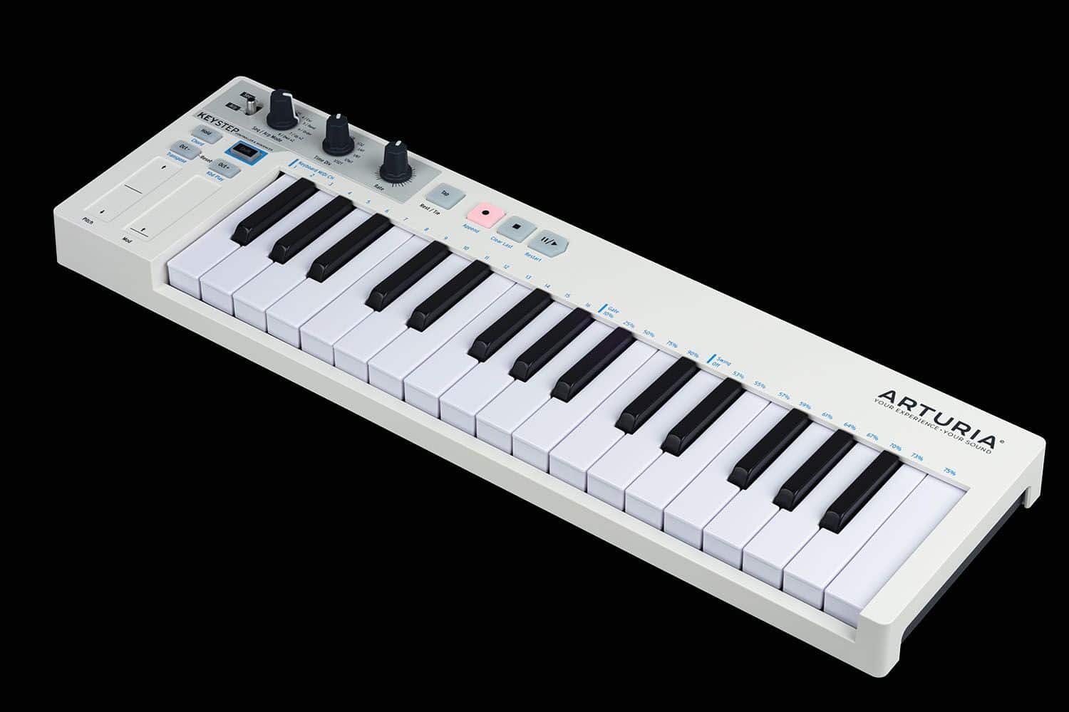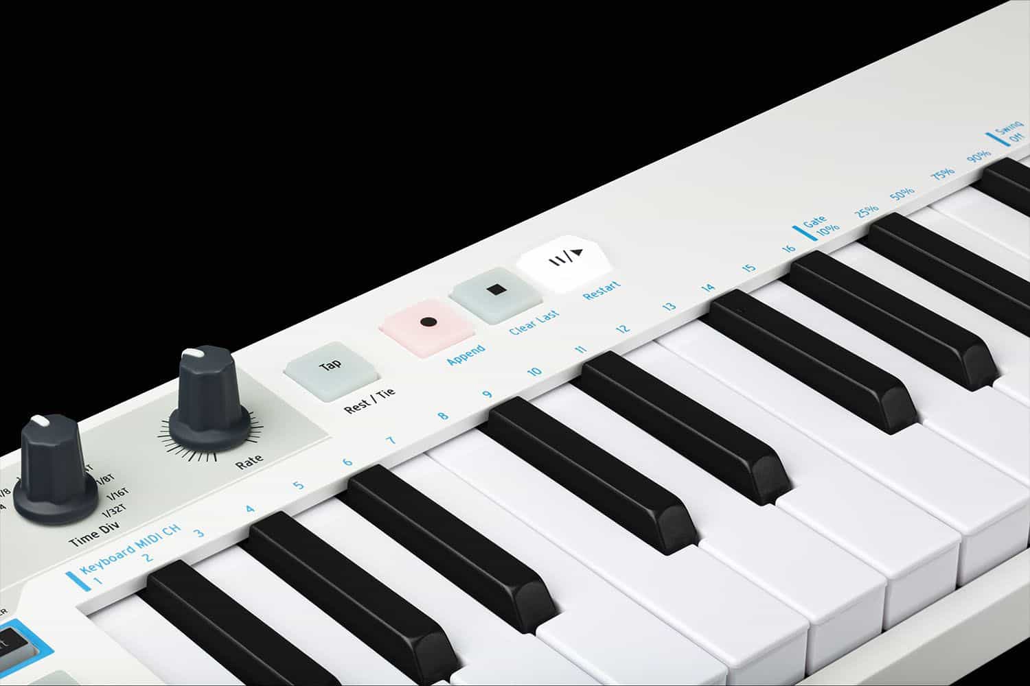 - 32 Slim-Tasten mit Anschlagdynamik und Aftertouch