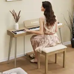 Die Klavierbank ist aus solidem Massivholz gefertigt und hat ein schlichtes, zeitloses Design, das in die meisten Häuser und zu den meisten Klavieren passt.