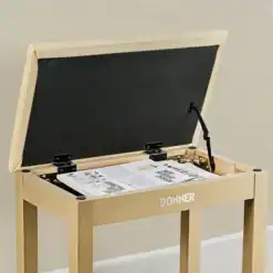 Das bequeme Sitzpolster lässt sich kippen, um dir Zugang zu einem praktischen Ablagefach zu geben, in dem du deine Notenblätter, dein Metronom oder andere Kleinigkeiten aufbewahren kannst.