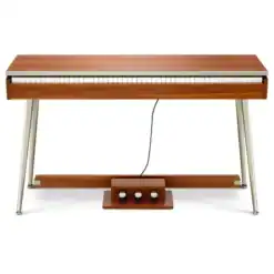 Highlights: Moderner, minimalistischer nordischer Stil, 4 champagnerfarbene Metallbeine in optimierten Neigungswinkel, montierte Pedalleiste, Klavierdeckel, kein technischer Schnick-Schnack