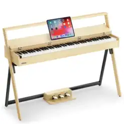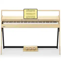 - Anschlüsse: Line in, Line Out, USB, Kopfhörer, Sustainpedal, 3er-Pedalgruppe