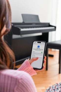 Highlights: Ausgestattet mit Kawais Responsive Hammer Compact II Tastatur, gewichteten Tasten und einem 3-Sensor-System für eine verbesserte Genauigkeit und Kontrolle, kompatibel mit PianoRemote-App.