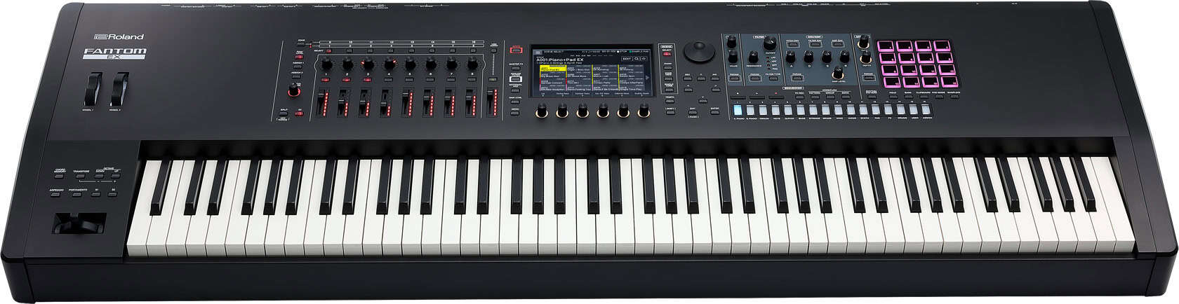 - 88 (Fantom 8EX) Holzhybrid-Tasten gewichtet mit Anschlagdynamik, Aftertouch und Druckpunktsimulation (PHA-50)