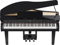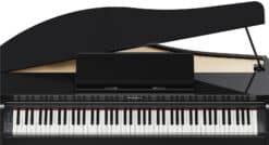 Highlights: Sehr kompakter Digitalflügel, nur 63 cm „lang“ mit aufstellbaren Flügeldeckel und Pedallyra.