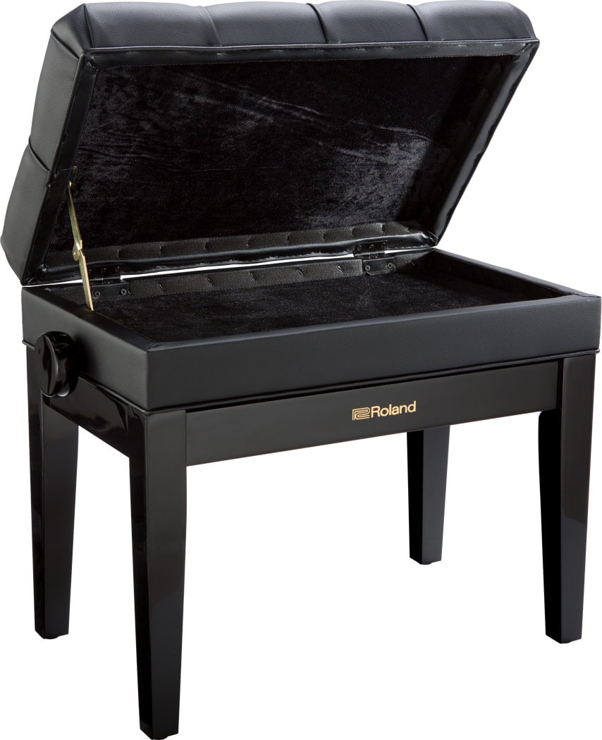 Der gepolsterte, aufklappbare Sitz bietet nicht nur erstklassigen Komfort bei langen Spielzeiten, sondern auch praktischen Stauraum für Noten und Zubehör.