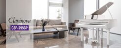- Stutzflügel-Gehäuse in Klavierlack (schwarz oder weiß)
