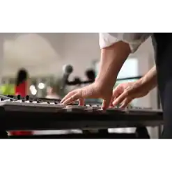 - Anschlüsse: 1x Kopfhörer (Stereo, 6,3mm Klinke), Pedal-Anschlüsse: 2 (zuweisbar), Audiorekorder (WAV-Format), USB-Stick Unterstützung (To Device), LINE OUT, AUX IN (3,5mm Stereoklinke), USB-MIDI (To Host)